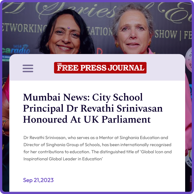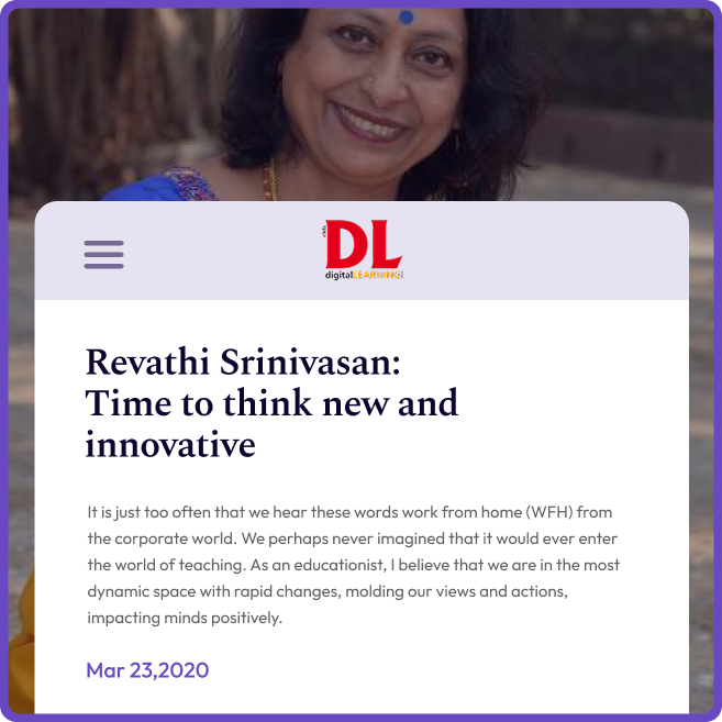 Rooted in India, inspired by the world -Dr. Revathi Srinivasan brings global best practices into every classroom.